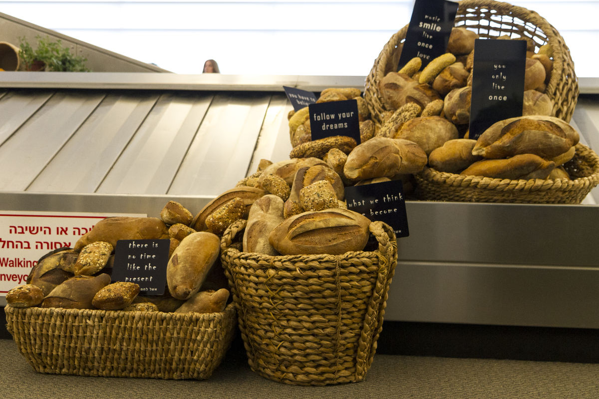לאחר סיור בנתב"ג מצאתי לנכון ליצור הרמוניה בשתי החללים, עשיתי זאת על ידי המחשה עיצובית שתיצור אווירת רחוב וכניסה לשוק. ההשראה ממנה שאבתי את הרעיון, הינו "מזרח התיכון , ארץ זבת חלב ודבש, שפע", מיקמתי ציוד של עגלות ודוכנים, סלים וארגזים, תאורת רחוב, וכמובן שפע של פירות וירקות. כסימבול למדינת ישראל, מצאתי לנכון להשתמש בכניסה בשופרות ותופים